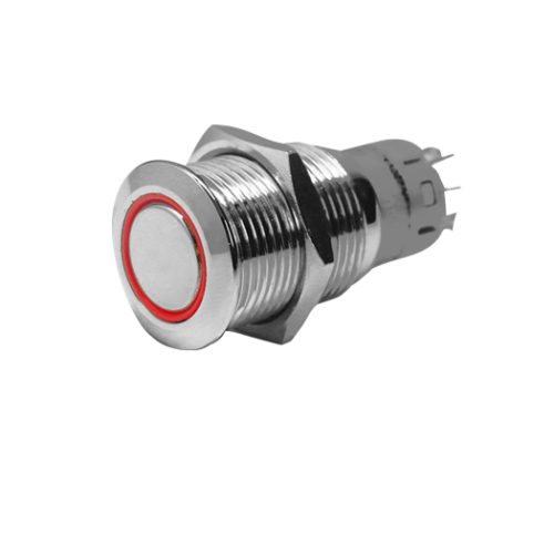 Niro Ring Led Druckschalter, On/Off, 24v, Bohrloch Ø16mm, Einbautiefe 36mm, Rot Led