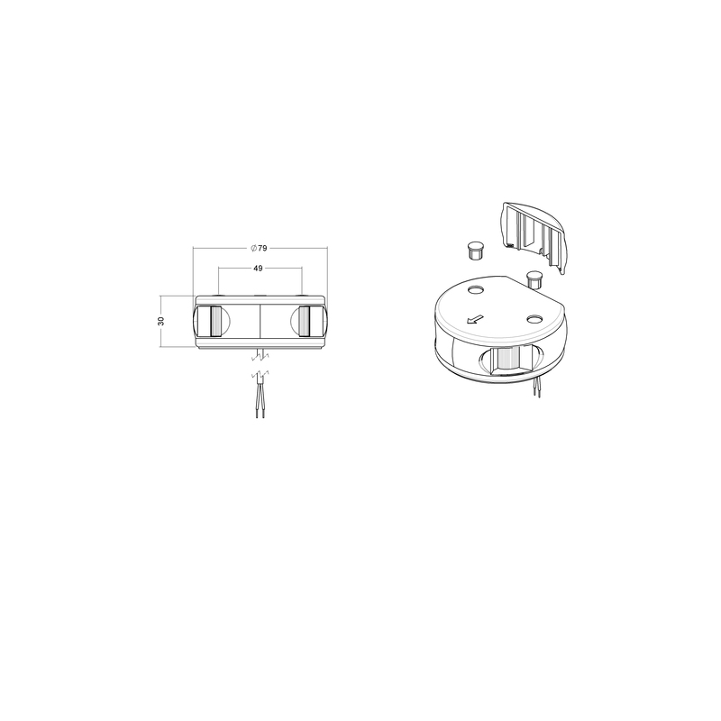 2x112,5°, schwarzes Gehäuse, Deckmontage, 12/24V