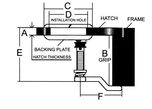 Niro Einlaßgriff Mit Drehverschluß, A=8-25mm, B=22-76mm, C=62mm, D=50mm, E=71mm, F=54mm