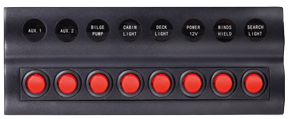 Kunststoff Schalttafel, 12v, 8-Schalter & Led-Indikator, Auto Fuse, Abm. 235x90mm, Wasserdicht, 2x5a, 3x10a, 3x15a Sicherungen
