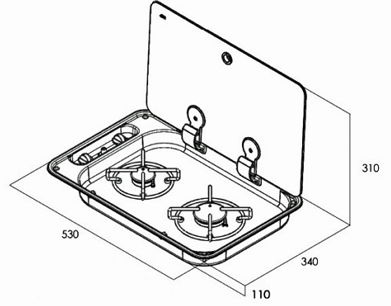 Gaskocher Mit Abdeckplatte, Brenner: 1x Klein/1x Mittel
