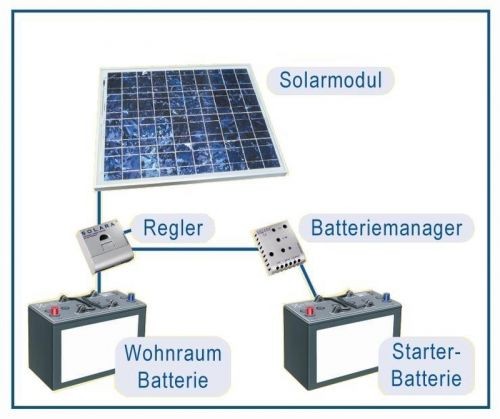 Solarmodule dürfen nur über einen Regler an die Batterie angeschlossen werden. Es können auch mehrere Solarmodule an einen Regler angeschlossen werden.